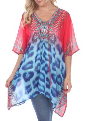 White Mark Women S Animal Print Caftan With Tie Up Neckline Belk